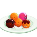 In Go Nuts for Donuts, on each turn, reveal candies from the deck equal to the number of players plus one and secretly choose the candy you would like to grab. Then reveal your choice simultaneously: if more than one of you has chosen the same candy, it is discarded and no one gets it; if you are the only one who has chosen a candy, you can take it and play it in front of you. Some of the sweets have a special power that is activated when the card is taken and that makes the game even more exciting.